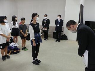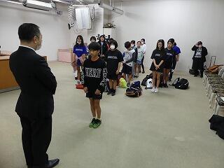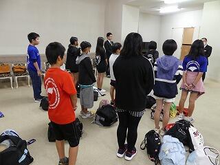 青島青少年自然の家に到着した後、4校合同の入所式がありました。本校の河村さんが代表で立派にあいさつをしてくれました。