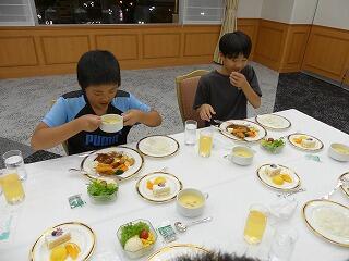 朝食は一般のお客様と一緒にバイキングです。取り方も上手でしたよ。