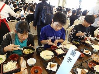 鹿児島の郷土料理「鶏飯」が出ました。昼食会場は宮崎県の小学生でごった返しでしたが、昼食はおいしくいただきました。