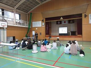 1月27日(金)は3年生の福祉体験活動を行いました。まず、車椅子体験です。「車椅子ってこんなに視線が低いんだ」などと初めて乗った感想が聞こえてきました。次にアイマスク体験です。アイマスクをして歩くと、自然と歩幅が小さくなり、用心して歩く様子が見られました。相手を思いやることに繋がることを願っています。