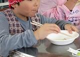 5年生は、米作り体験をしていたので、そのお米でおうちの人と一緒に「おにぎり作り」