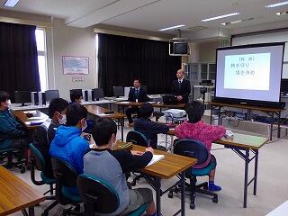 今日(2月26日〔木〕)の5時間目にパソコン室で中学校入学説明会がありました。