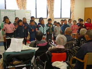 歌を歌ったり、合奏したり、子どもたちはたくさんの”元気”をプレゼントしました。涙を流して喜んでくださる方もいらっしゃいました。子どもたちにとっても貴重な体験でした。