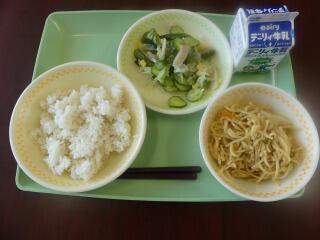今日は、減量ご飯、五目うどん、小松菜のナムル、牛乳でした。
