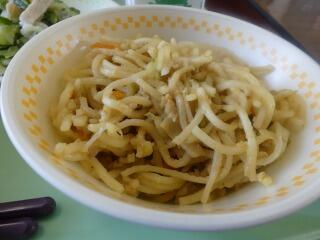 本日は、減量麦ご飯、ジャージャー麺、グリーンサラダ、牛乳でした。