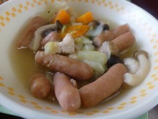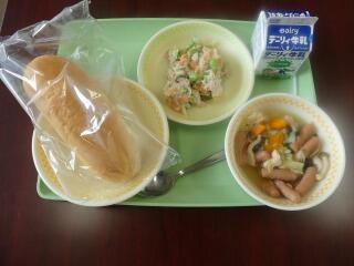 今日のメニューは、コッペパン、ポトフ、青豆サラダ、牛乳でした。