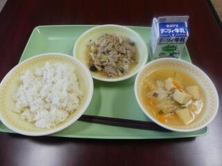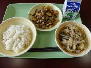 今日は、麦ご飯、豚汁、ひじきの炒め煮、牛乳でした。