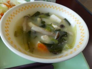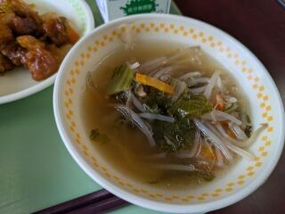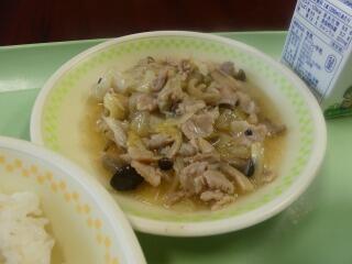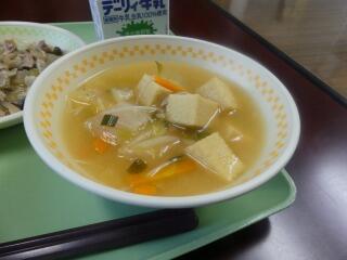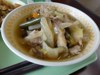 メニューは、麦ご飯、ワンタンスープ、回鍋肉、牛乳でした。