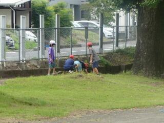 先生も交えてたくさんの声が帰ってきた運動場です。