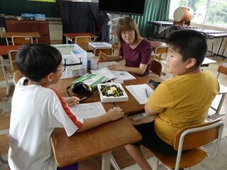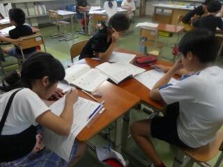 集中しながら、先生の指示を聞きながら、発表にも意欲的な1年生です。