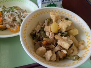 今日は、麦ご飯、肉豆腐、梅おかか和え、牛乳でした。