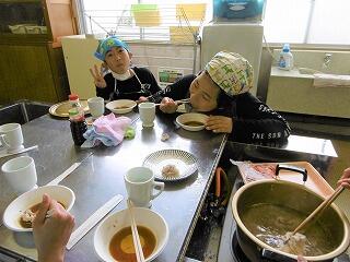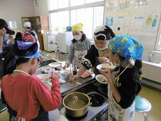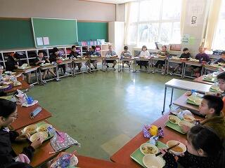 今日の給食は、6年生にとっては、小学校最後の給食となりました。全員輪になり、楽しそうにかみしめながら食べていました。