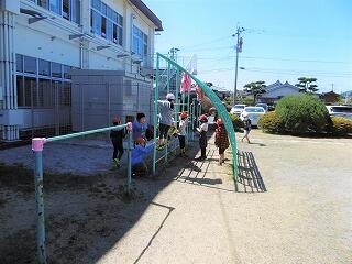 昼休みは運動場を走り回る児童の姿が見られました。臨時休校中は自宅で過ごすことが多かったせいか、いつもにも増して元気よく体を動かしていました。
