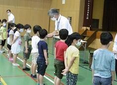 今年度も森永小学校は、1年生を新しく加え、青少年赤十字に登録しました。登録式は、例年より縮小しての開催となりました。担当の竹内先生からJRCについてお話をしてもらい、1年生も校長先生からバッジをもらい、「がんばろう」という思いをもってくれたようでした。