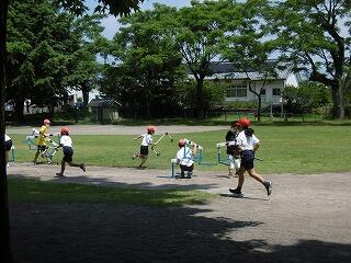 体育の時間は運動場で、ハードル走。後片付けもみんなでします。