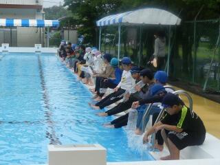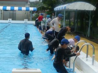 雨雲が切れたわずか15分程度の時間でしたが、最後は、5・6年生が着衣泳を実施しました。