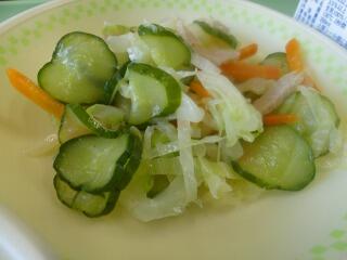 メニューは、麦ご飯、汁ビーフン、棒々鶏サラダ、牛乳でした。