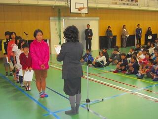 今日の集会では、2学期に頑張っていた各学年1名(計6名)の児童が表彰され、全校児童でその頑張りを讃えました。