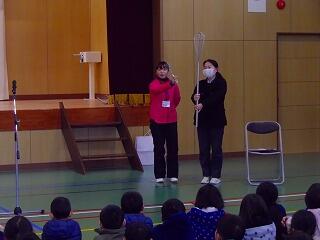 1月20日(水)の朝の時間に給食センターの栄養士の先生を招いて給食感謝集会を行いました。
