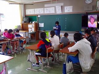 1年生は、学級活動で題材は、「なんでもたべよう」でした。国富町の学校栄養士の先生に来ていただいて食べ物の働きなどについて学習しました。