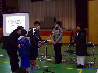 最後に代表の児童がお礼の手紙と花束を送りました。