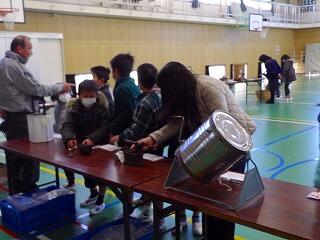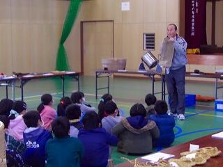 体育館に昔の道具がたくさん並び、子どもたちは大興奮でした。質問コーナーでは、疑問に思ったことをたくさん質問し、指導員の方に丁寧に教えていただきました。子どもたちは昔の道具についてより詳しく知ることができました。