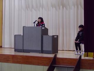 校長先生からのお話があった後、3年生と5年生の代表児童が2学期がんばったことの作文を発表しました。