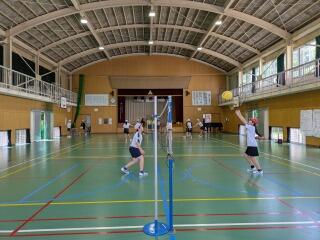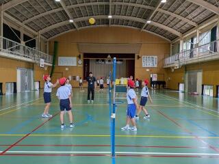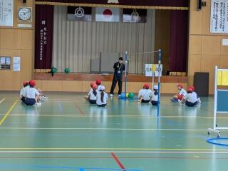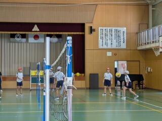 体育館をのぞくと、5年生の体育「ソフトバレー」をやっていました。