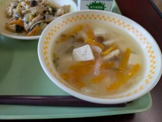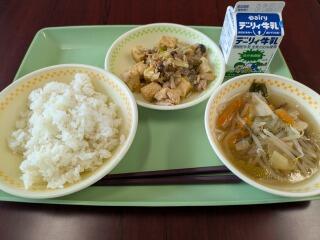 今日のメニューは、麦ご飯、呉汁、ひむか炒め、牛乳でした。