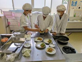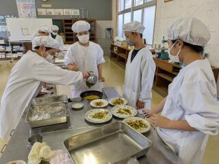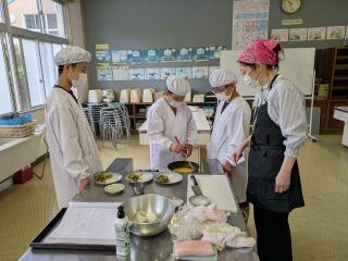 今日は、栄養教諭の先生に教えていただきながらの調理実習でした。