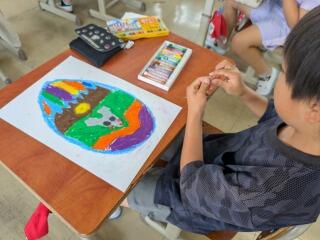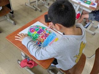 みんな思い思いの色やデザインで世界に1つしかない「たまご」を描いています。