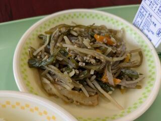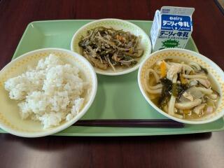 減量麦ご飯、わかめうどん、きんぴらごぼう、牛乳でした。