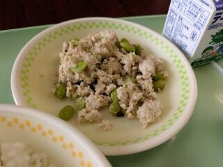 鶏そぼろ丼の具の青豆は、そぼろを引き立てていました。