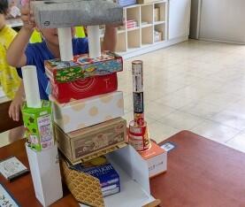 どの箱をどの向きで置いたらよいか。どんな順番で積んでいくかなど、ともだちと仲良く協力してやっていました。