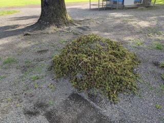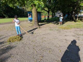 最初はモミジバフウの実で遊んでいたようですが、帰る前に掃除をしてくれていました。