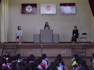 新任式では、今年度、新しく来られた3名の先生方からあいさつをしていただきました。(「あいさつがいい。」「ボランティアをかんばってるね。」等いろいろとほめていただきました。)