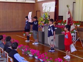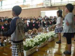 退場の際には、地域の方からいただいたブーケを5年生が手渡しました。