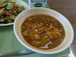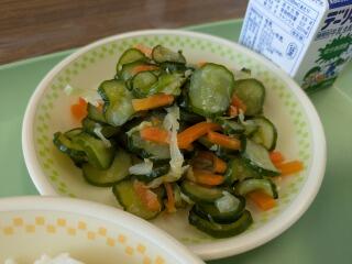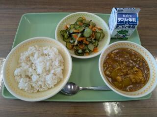 今日は、米粉キーマカレー(麦ご飯)、たたききゅうり、牛乳でした。
