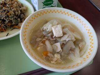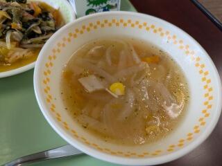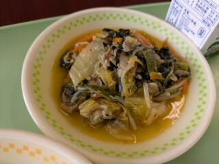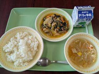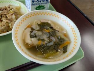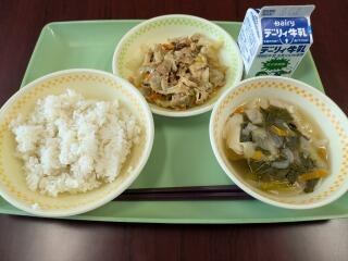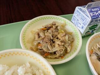 メニューは、麦ご飯、ワンタンスープ、回鍋肉、牛乳でした。