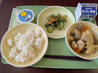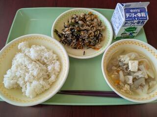今日は、麦ご飯、豚汁、ひじきの炒め煮、牛乳でした。