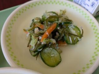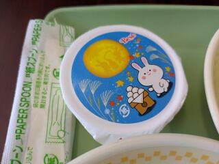 メニューは、麦ご飯、うま煮、茎わかめの酢の物、十五夜ゼリー、牛乳でした。