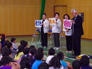 朝ご飯を食べるためには早起きが大切で、早起きをするためには早寝が大切であることを学習しました。朝ご飯は、①体をうごかすスイッチ・②頭をはたらかせるスイッチ・③うんちスイッチの3つのスイッチを入れる大切なものです。今回の話を聞いて、全校児童が、毎日早寝・早起きを心がけて、朝ご飯をしっかり食べ、スイッチをオンにして元気に登校してほしいと思います。