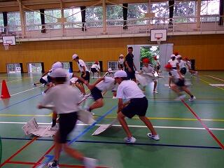 5年生は、体育で題材は、「体つくり運動」でした。音楽に合わせて動いたり、新聞紙等を使って友達と協力して運動したりしながら、精一杯活動していました。