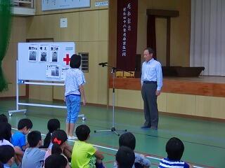 今回はJRC宮崎支部から2名、奉仕団から5名の方に来ていただき、JRCの活動について学習したり、1年生にJRCのバッジを授与していただいたりしました。子どもたちがこれからも「気づき、考え、実行する」の理念をもとに、学校生活を送ってくれることを期待しています。