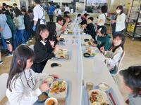鹿児島の郷土料理「鶏飯」が出ました。昼食会場は宮崎県の小学生でごった返しでしたが、昼食はおいしくいただきました。