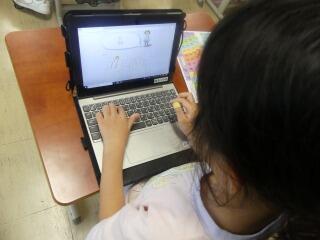 授業時数でのローマ字学習は少ないので、隙間時間を見つけて取り組んでいます。