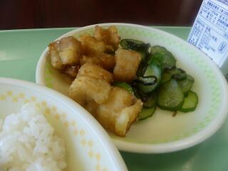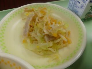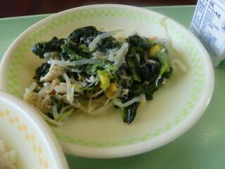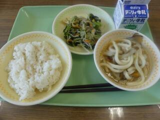 今日は、減量ご飯、五目うどん、小松菜のナムル、牛乳でした。
