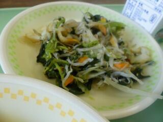 今日のナムルは、小松菜やもやし、にんじん、ちくわ、ちりめんじゃこが使われていました。