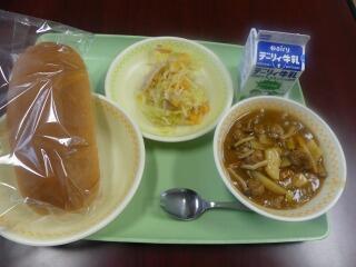 今日は、黒糖パン、ミートボールのデミグラス煮、みかんサラダ、牛乳でした。