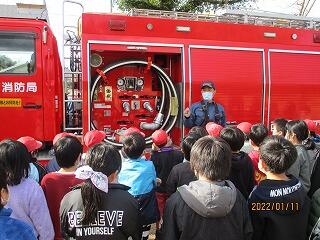 1月11日(火)に、火災を想定した避難訓練を行いました。消防署の方から、火災を防ぎ、身を守るための大切なことを学びました。消防車の見学では、みんな興味津々に説明を聞いていました。